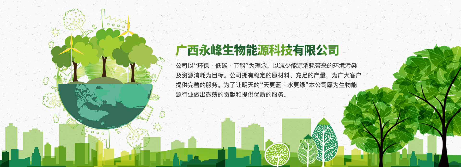 公司以“環(huán)保﹑低碳﹑節(jié)能”為理念,以減少能源消耗帶來(lái)的環(huán)境污染及資源消耗為目標(biāo)。公司擁有穩(wěn)定的原材料、充足的產(chǎn)量,為廣大客戶提供完善的服務(wù)。為了讓明天的“天更藍(lán)﹑水更綠”本公司愿為生物能源行業(yè)做出微薄的貢獻(xiàn)和提供優(yōu)質(zhì)的服務(wù)。